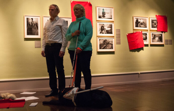 Der Mannheimer Performance-Künstler und Künstlerische Leiter von Zeitraumexit zeigt in der Ausstellung Locked up / Die Zelle einen performativen Geh- bzw. Sehversuch. Diesen gestaltet er in Form einer humorvoll angelegten und dennoch wissenschaftlich gemeinten Führung zum Thema sehende bzw. blinde Wahrnehmung in oder von Ausstellungsräumen. Beteiligt sind außer ihm als weitsichtigem Menschen ein Brille tragender Museumswärter sowie eine blinde Frau, ein Plattenspieler und zwei bis drei Langspielplatten