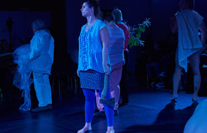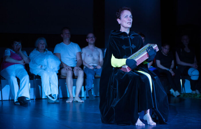 In Stravinskys berühmten Musikstück ‚Sacre du printemps‘ wird die Geschichte einer Gemeinschaft erzählt, die eine Jungfrau als Opfer für den Frühlingsgott auserwählt. Die Uraufführung 1913 wurde zum Skandal. ‚Sacre – Eine wahre Geschichte‘ nimmt Bezug auf diese legendäre Aufführung, befragt sie und nimmt sie zugleich als Grundlage, um über Wünsche, Weihe und Opfer nachzudenken. Wer opfert sich für wen und was und wer nicht? Wer gibt von sich etwas her? Und warum? Die Performance wurde mit behinderten und nichtbehinderten KünstlerInnen und Laien erarbeitet.